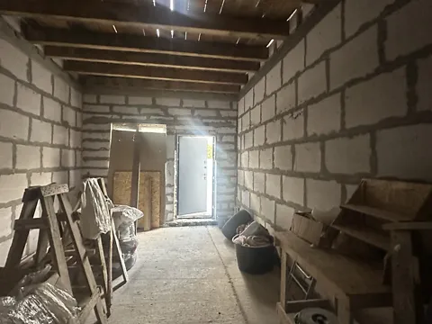 У продажу двох поверховий будинок, стан від забудовника. На першому велика кухня-вітальня, санвузол, і невеличка кімната, на другому вільне планування, можна зробити дві або три кімнати. Є подвірʼя, місце для паркування автомобіля.