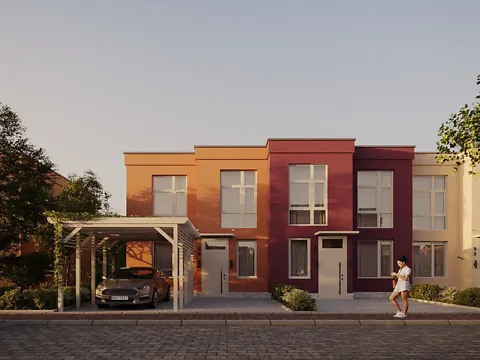 В городке спроектировано 62 дома с просторной придомовой территорией и бассейном на территории. Каждый дом имеет свой двор с возможностью обустройства зоны барбекю, сада или террасы.