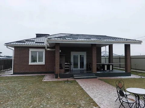 Дом построен из керамического блока и обшит кирпичом, обеспечивающим долговечность и энергоэффективность.