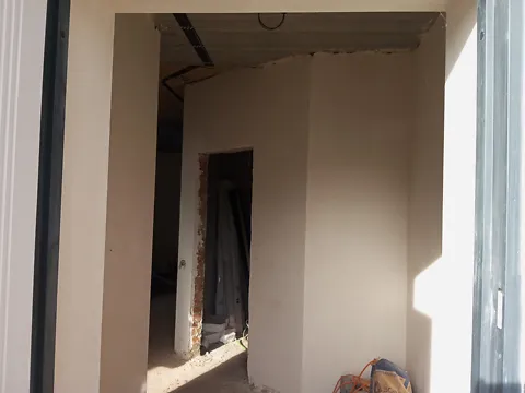 Современное планирование: три отдельные комнаты, просторная кухня-гостиная и выход на террасу. Дом построен в 2024 году из кирпича, выполнена чистовая штукатурка, установлены теплые полы и электрическое отопление.