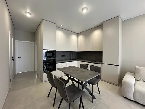 Общая площадь - 70м2, 2 отдельные спальни, и просторная кухня-гостиная, санузел и гардеробная комната.