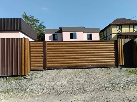 Территория огорожена забором из профнастила и имеет двое ворот.