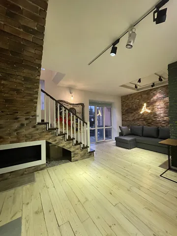 В продаже дом с неповторимой атмосферой и дизайном. Ремонт выполнен в рустикальном стиле с элементами кантри. Много натурального дерева и камня в декоре, штукатурка стен и потолка имитирует валку. Кованый металлический декор ручной работы, оригинальные деревянные межкомнатные двери.