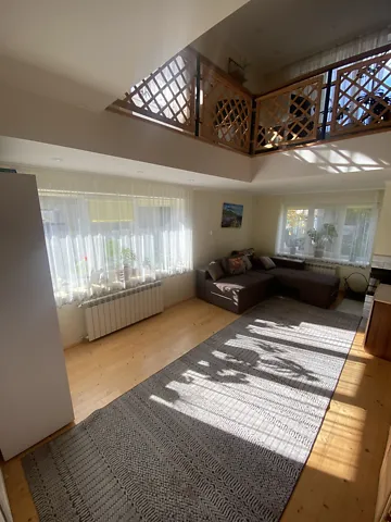 Уютный дом для семьи. Комфортный, удобный, есть кондиционер, рекуператор, камин. На первом этаже кухня, гостиная-холл, санузел. На втором холл, 2 спальни, одна узкая проходная комната и ванная.