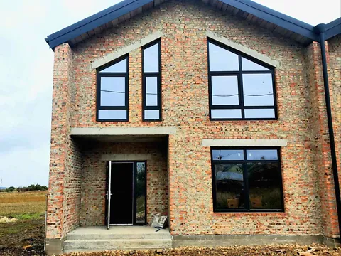 Двухэтажная кирпичная застройка, качественные металлопластиковые панорамные окна и двери, крыша перекрыта металлопрофилем.