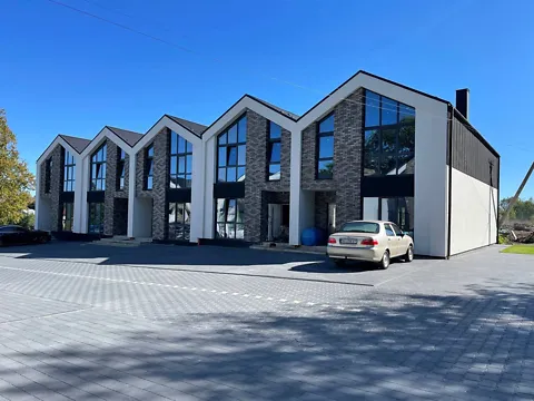 Это комплекс закрытого типа, где находится 6 аналогичных домов, разделенных забором, вокруг которого сконструирован большой забор для безопасности и приватности жителей. Данный объект размещен в лесу, что создает ощущение уюта и комфорта.