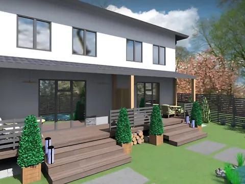 Продается дуплекс на этапе строительства. Под клиента достроят за 1.5 месяца. Завершение строительства планируется через 3 месяца.