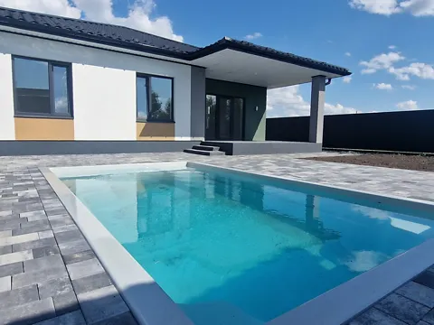 Просторный и стильный одноэтажный дом, общей площадью 100 м², расположен на ухоженном участке 2.8 сотки.