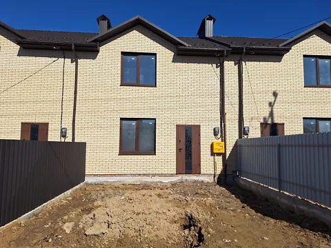 Дуплекс общей площадью 90 м, три комнаты, два санузла, кухня гостиная, гардеробная, земельный участок перед домом, сбоку и позади дома! Коммуникации подведены, транспорт рядом!.