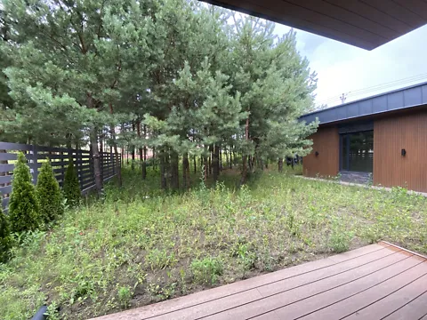 На участке есть несколько многолетних сосен, площадка для авто, отмостки