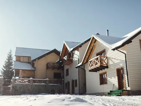 Три дома с уютными комнатами, выполненными в эко-стиле, построены из карпатских елей и бука. Находящиеся между горами, в живописном селе Яблуница - 14 км от горнолыжного курорта
