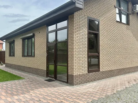 Дом из клинкерной кирпича, с гаражем, огражденный со всех сторон, автоматизированные ворота. Построен из высококачественных материалов, немецкая металлочерепица Арцелор, нержавеющая арматура, монолитный фундамент, изолированный минеральной ватой.
