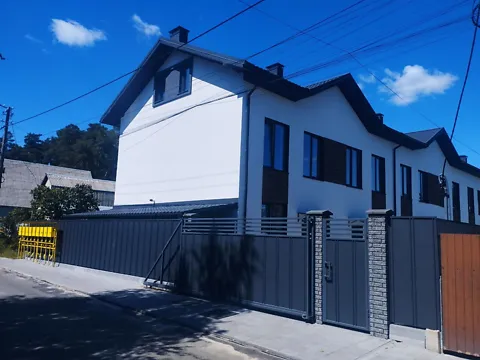 Таунхаус м. Ірпінь вул. Шкарівських 12 біля парку центральний . Площа 75 метрів з власною земельною ділянкою 1 сотка. 2 поверхи , 3 кімнати, велика кухня- вітальня з виходом на терасу, паркомісце для автомобіля.