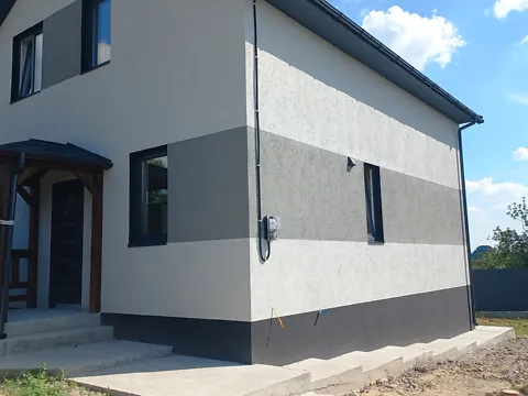 Двоповерховий, складається з чотирьох житлових кімнат, кухні, двох санвузлів, котельні. Дуже вдале сучасне планування.