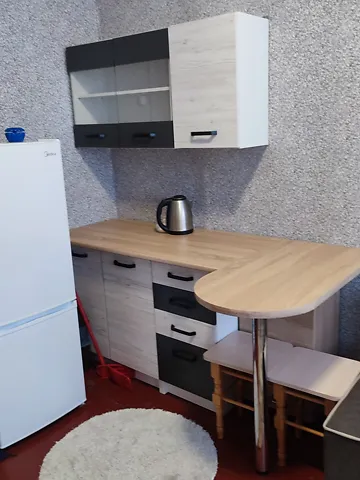 Комната со своим санузлом, центр, счетчики на воду и свет, на кухне своя плитка, мойка, стол, мебель.