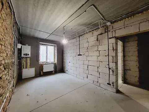 штукатурка на стенах, стяжка на полу, разведенная электрика, отопление и водоснабжение. Двухконтурный котел. Хорошая панорама во двор.