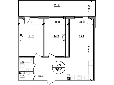 Современная планировка площадью - 75 м² создана специально для комфорта и уюта.