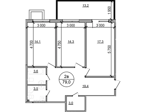 Площадь 2-комнатной квартиры - 69.4 м². Квартира расположена на 2 этаже 4-х этажного дома.