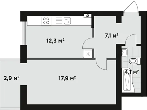1к - 40, 7м.кв.