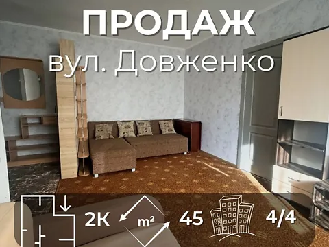 Продается 2-х комнатная квартира 45 м2, которая находится на 4-м этаже с застекленным балконом, в кирпичном доме, в чудном и уютном районе города по улице Довженко.