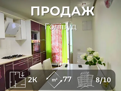 Общая площадь 77 м², кухня 14 м² с выходом на балкон.