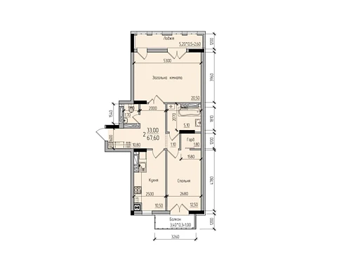 Площадь жилья данной планировки 67.6 м².