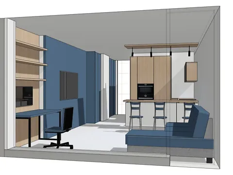 Планируется: в спальню, гардеробную, санузел, огромная гостиная-студия (можно разделить на 2 комнаты)