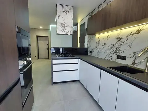 Новая квартира с дизайнерским ремонтом. 2 спальни, гостиная-кухня. Оснащена встроенной техникой. 2 отдельных санузла. Одна из спален имеет свою отдельную гардеробную комнату. Панорамные окна, терраса. В доме есть подземный паркинг. Также можно купить парковочное место.