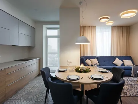 Спланировано в кухню-студию и просторную спальню.