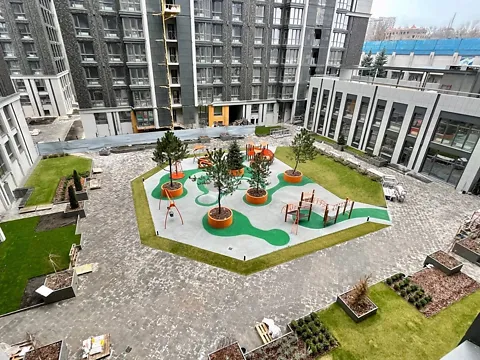 Закритий двір без машин, їм призначений підземний паркінг, облагороджена територія, кілька лаунж зон.