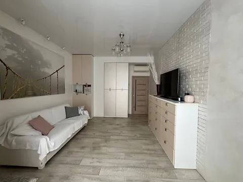 Уютная квартира на 6 этаже нового бизнес-класса дома с панорамными окнами и высокими потолками, где свет и воздух становятся частью интерьера.