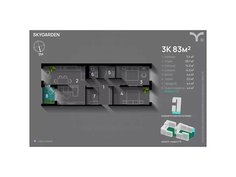 Продажа 3-комнатной квартиры от застройщика без посредников - 3-комнатная квартира в ЖК SKYGARDEN.