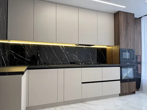 - большая кухня-студия правильной формы