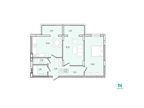 Продается 2-комнатная квартира напрямую от застройщика - Harmony. Функциональная комфортная планировка 2-комнатной квартиры отлично подойдет для вашего уюта и досуга.