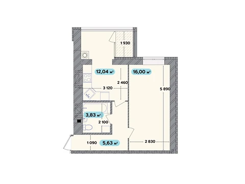 Общая площадь 46, 48 м² и просторная кухня 12 м².