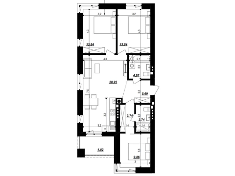 Площадь: 63 м²