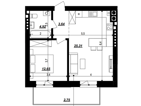 Современная планировка площадью - 46.37 м² создана специально для комфорта и уюта.