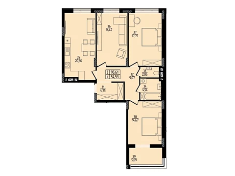 Современная планировка площадью - 95.61 м² создана специально для комфорта и уюта.