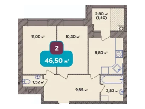 Площадь жилья данной планировки 46.5 м².