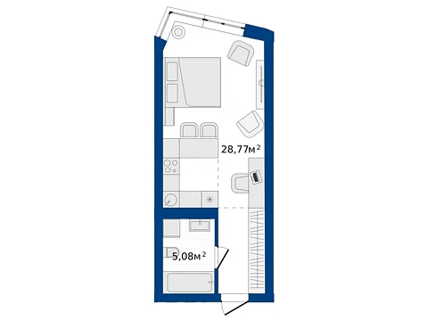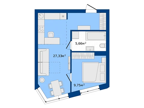 Эта современная комфортная планировка 1-комнатной квартиры с зонами для досуга и работы. Площадь 1-комнатной квартиры - 41.76 м².