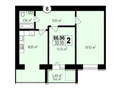66.96 м²