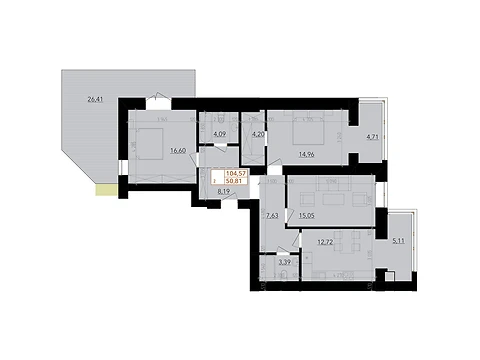 Площадь жилья данной планировки 107.8 м².