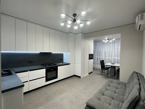 Кухня повністю укомплектована вбудованою технікою: посудомийна машина, духова шафа, варильна поверхня, витяжка, холодильник. Обідня зона винесено на лоджію з панорамними вікнами та чудовим видом.У квартирі дві окремі кімнати та гардеробна, що забезпечує зручне зберігання речей.