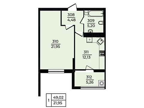 Современная планировка площадью - 49.02 м² создана специально для комфорта и уюта.