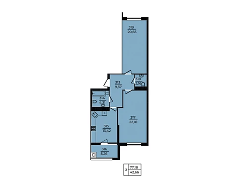 Современная планировка площадью - 77.18 м² создана специально для комфорта и уюта.