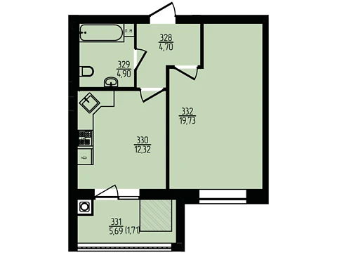 Современная планировка площадью - 43.68 м² создана специально для комфорта и уюта.