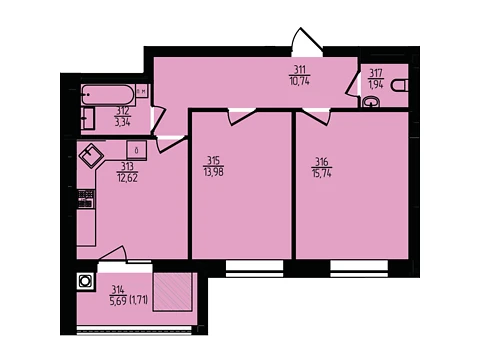 3 комнаты