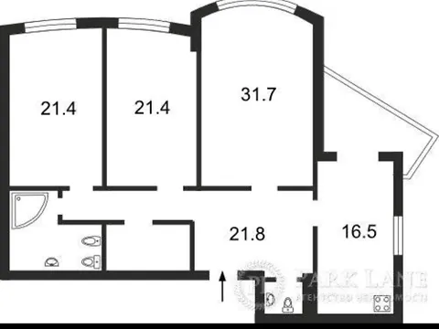 Квартира имеет удобную планировку с раздельными комнатами 21, 31 и 21 кв.м., двумя санузлами, кухней 16 кв.м. и просторной лоджией.