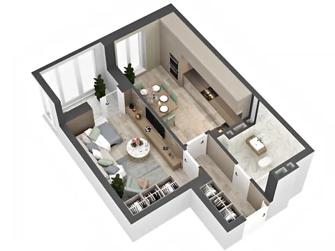 1-комнатная квартира, 47 м2. Дом зданий, введенный в эксплуатацию.