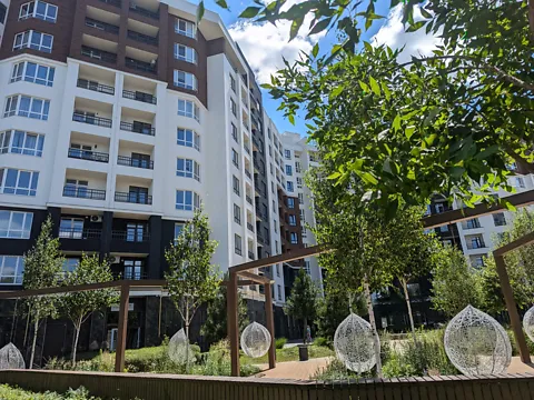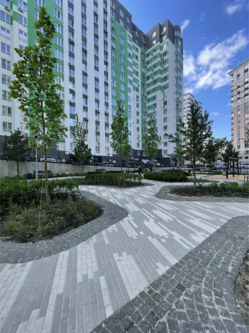 Красива прибудинкова територія, велике паркування по периметру комплексу.